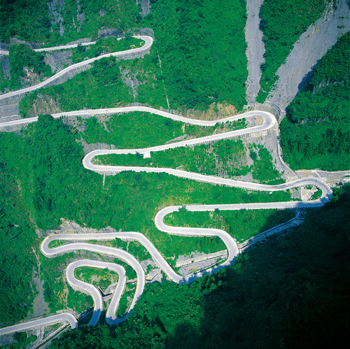 天門山國家森林公園位于張家界市區南郊,其核心景點通天大道歷時8年修建,公路自天門山山門廣場始,至天門洞止,公路共有99個彎道,180度的彎路環環相連、層層迭起,氣勢雄偉。建設公路過程中又為減少植被破壞,整個工程充滿著艱辛卓絕,以蜿蜒迂回穿行于山體絕壁之天險而成為天下第一公路奇觀。中國書法家協會名譽主席沈鵬先生走過通天大道后欣然為其題字“曲道通天”,字體遒勁挺拔,與通天大道的奇絕天下相融為一體。