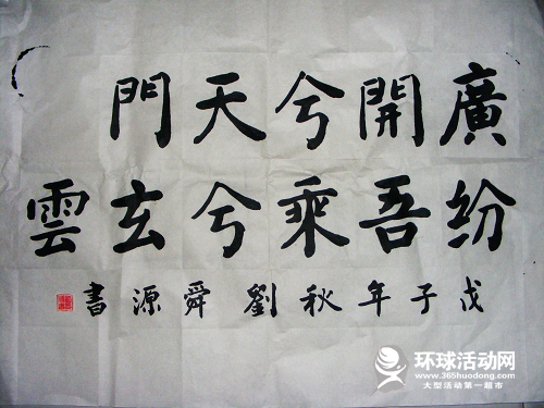 根據安排,劉舜源將于9月5日在天門山天門洞書寫我國偉大愛國詩人屈原贊美張家界的詩句——“廣開兮天門,紛吾乘兮玄云”,屆時三十名太極拳愛好者將在劉舜源身后舞動太極。而劉舜源現場創作的這幅八米長、四尺寬的書法作品,則制作成巨大拼板,在9月12日中國湖南國際旅游節開幕式上由千人托舉向海內外嘉賓展示。據本屆旅游節總導演陳偉康介紹,天門山自然景觀雄渾、文化底蘊深厚,之所以選定少兒在天門揮毫,有利于把中華民族優秀的歷史文化在孩子的啟蒙教育階段培養起來,同時也增加本次湖南旅游節的亮點和看點。