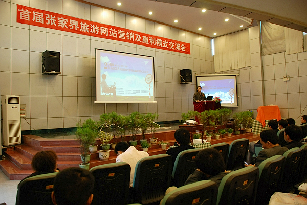 08年11月21日,為張家界旅游的健康良性迅速的發展,張家界100來家旅游網站的站長們在土家風情園會議室一起搞了個“首屆張家界旅游網站營銷及贏利模式交流會”。