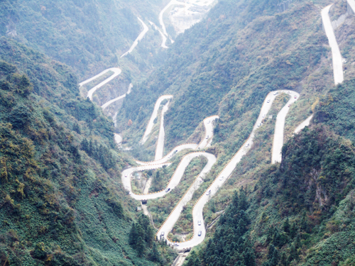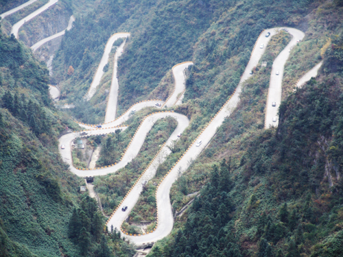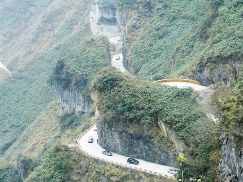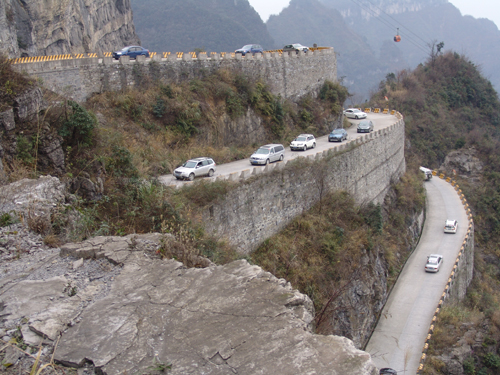 6日,來自長沙金鷹955自駕會所的50臺自駕車齊聚天門山天路,舉辦“挑戰通天大道,體驗心跳之旅”的自駕活動。這是通天大道在2008年度迎來的第六次大型自駕活動。