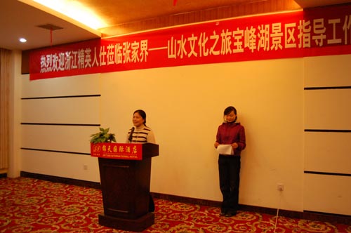 12月26日,浙江省雙龍工人療養(yǎng)院副院長胡亞娜、辦公室主任賈似錦等一行22人赴寶峰湖考察。考察團對寶峰湖的美景贊不絕口,尤其是泛舟在寶峰湖,優(yōu)美婉轉(zhuǎn)的土家山歌讓其留戀往返。