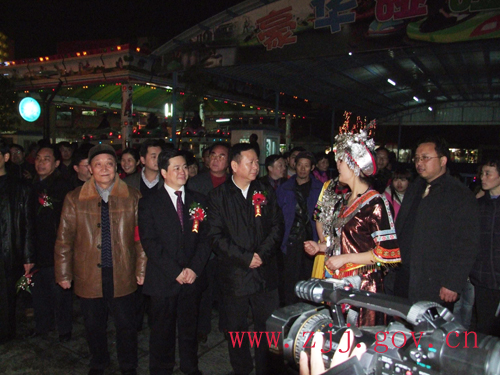 2月3日是農(nóng)歷正月初九,晚上18:30分,2009年張家界市城區(qū)“狂歡張家界”大型春節(jié)群眾民族文化活動(dòng)盛大燈展開(kāi)幕式在大庸府城隆重舉行。市委書(shū)記胡伯俊,市政協(xié)主席周元庭,市委常委、政法委書(shū)記陳美林,市委常委、宣傳部長(zhǎng)肖凌之以及永定區(qū)委、區(qū)政府領(lǐng)導(dǎo)等出席開(kāi)幕儀式。胡伯俊為2009年張家界市城區(qū)“狂歡張家界”大型春節(jié)群眾民族文化活動(dòng)盛大燈展活動(dòng)開(kāi)啟啟動(dòng)按鈕,2009年張家界市城區(qū)“狂歡張家界”大型春節(jié)群眾民族文化活動(dòng)正式啟動(dòng)。