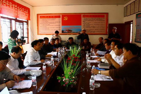 考察組在村部會議室聽取了該鄉負責人關于雙峰新農村建設示范點近年來基本情況介紹,然后共同探討和交流了現階段在社會主義新農村建設中的扶貧開發、整村推進等問題和經驗。雙峰村圍繞旅游市場,積極調整農業產業結構,運用科學指導,不斷促進農村經濟發展,不斷拓寬農民增收渠道的新思路和新方法也得到了考察組的交口稱贊口。同時就如何更好地建設好示范村,發揮更大的經濟、社會效益和輻射效應,考察組提出了很多很好的建議。