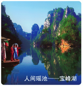 世界自然遺產------寶峰湖:被稱為“世界湖泊經典”,地處張家界武陵源風景名勝區的核心地帶,距天子山8KM,距武陵源區政府1.5KM,距黃龍洞8KM。寶峰湖風景區集山水于一體,融民俗風情于一身,尤以奇秀的高峽平湖絕景、“飛流直下三千尺”的寶峰飛瀑、神秘的深山古寺聞名。