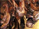 (注:張家界市場上出售的臘肉一般有兩種:一種為專門的熏烤店熏制的臘肉,另一種為農家自制的臘肉。以上兩種臘肉,前種包裝精美,后種無包裝,但味道特別香淳。) |