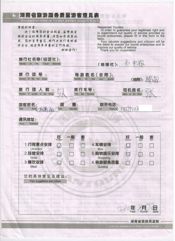 泉州陳錦麗一行5人旅游質量回饋