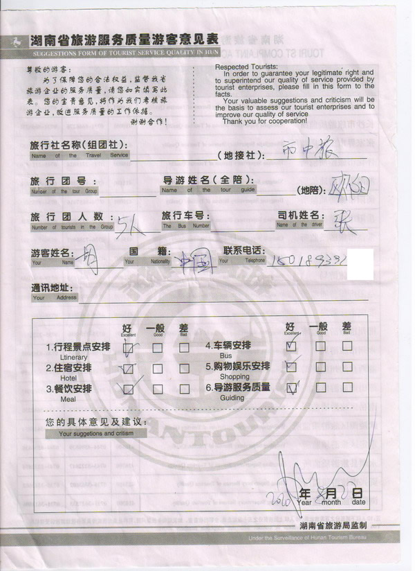 香港胡先生一行5人旅游質(zhì)量回饋:安排的一切都好!