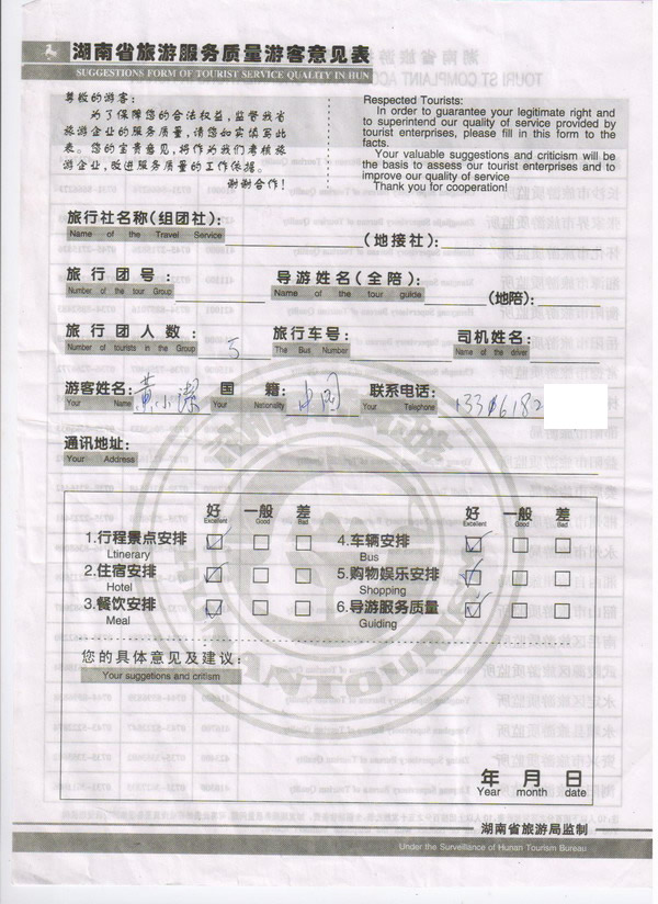 廣州黃小潔一行5人旅游質量回饋:安排的一切都好!