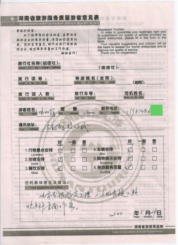 云南張小姐一行18人旅游質量回饋:張家界旅游真不錯,人文服務挺不賴,歡迎來云南作客!