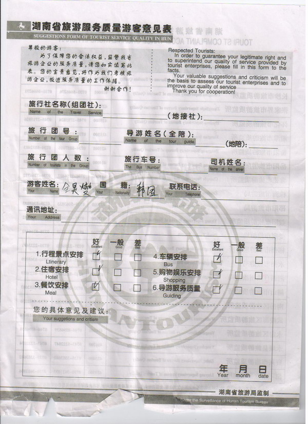韓國全先生一行4人旅游質量回饋