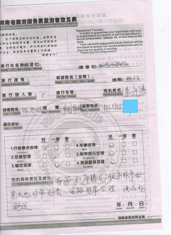 福建陳先生一行5人旅游質量回饋 :導游和師傅的服務非常好,景點也非常好看,安排非常合理,酒店十分舒適。
