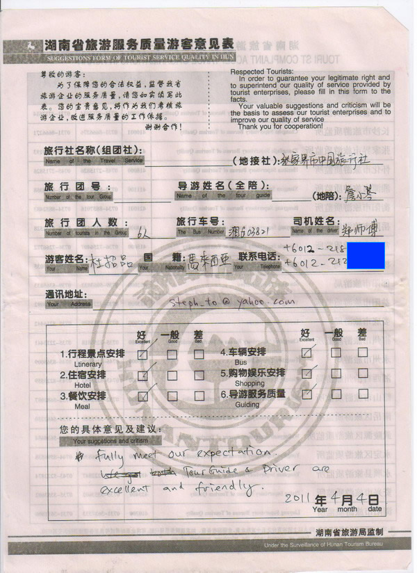 馬來西亞杜先生一行6人旅游質量回饋:我們趕到很滿意,導游很優秀很體貼善良!