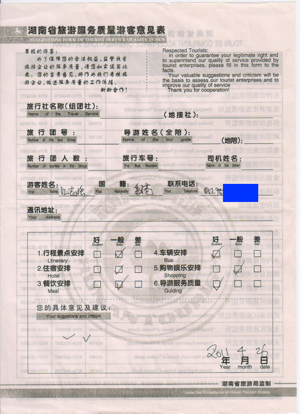 香港江先生一行8人旅游質量回饋