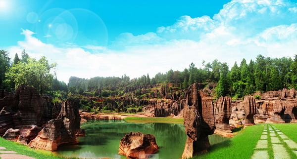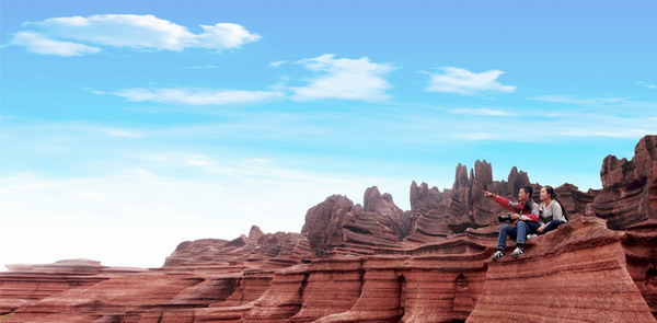 走進(jìn)紅石林,猶如探進(jìn)一個(gè)迷幻而又神秘的世界,景區(qū)石林奇特、峰叢怪異,石柱、河流、湖泊、暗河、瀑布、洞穴、巖溶、洼地多彩多姿、色彩斑斕、層次分明、絢麗壯觀,石林的顏色且隨季節(jié)而變:晴紅雨黑、陰轉(zhuǎn)褐紅、晨昏有別、季變色變、變幻多端、造型各異、古樸雄奇、嘆為觀止,不愧為五億年前海底世界之珍藏。