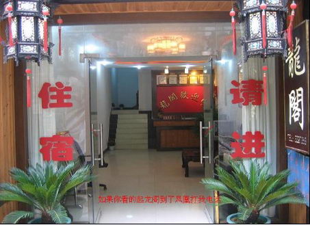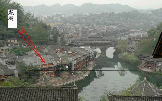下車。走路下橋走回龍閣古街120米到龍閣.路上經過.看見.根據地酒吧。流浪者酒吧。樓外樓飯店.黃永玉畫室.準提庵。沱江人家客棧。在下50米就到35號龍閣.那就是我的龍閣客棧.
