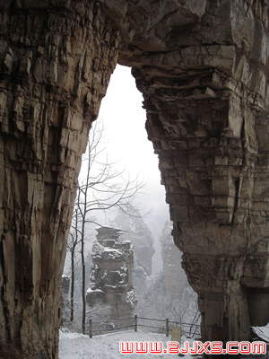 現在,南天門的兩道門仍十分方正,雄偉壯觀。那門下一尊石峰猶如向大坤張弩發箭的姿態,云霧涌門時更為逼真。 |