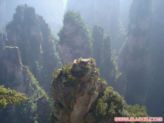 [后花園] 黃石寨有個前花園,這里有個后花園,傳說都是向王天子圍獵休閑的場所。這座園門,呈渾圓雙拱,就像古時候的那種滿月型園門了。加之這數十座石峰,小巧精致,點綴于從林之中;百鳥歌唱,溪澗淙淙,跟古時候大戶人家的后花園韻味兒差不多。