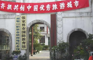 歡迎各位來賓到湘鄂川黔革命根據地紀念館參觀。這里原系民國7年(公元1918年)芬蘭牧士建的天主 堂,3棟共15間木結構平房,四周有磚墻環護。1934年11月24日,中國工農紅軍二、六軍團在任弼時、賀龍、肖克、王震等領導下,一舉解放大庸縣城,于26日成立臨時省委,12月1日在天主堂內成立湘鄂川黔省革命委員會,領導湘鄂川黔革命根據地31個縣的反圍剿斗爭,沉重地打擊了國民黨反動派和地方封建勢力,為中華民族的解放事業作出了卓越貢獻,在中國人民革命斗爭史上寫下了光輝燦爛的一頁。為緬懷先烈功績,弘揚革命精神,中共張家界市永定區委和區政府于91年夏發動募捐修復湘鄂川黔省委、省軍區、省革命委員會舊址,并新建紀念館,于1993年12月26日落成開館。 紀念館占地面積2800平方米,其中建筑面積1600平方米。東頭是三堵矮墻圍著的一棟木平房,三間小屋曾住過任弼時、賀龍、肖克,黑漆桌上的桐油燈作證,一代英杰曾在這里徹夜運籌。西頭是可容納200余人的省委禮堂,當時省委擴大會和省直各部門的會議均在此召開,現已辟為將軍館,166位在湘鄂川黔革命根據地留下英雄足跡的新中國將帥的照片掛滿墻壁。紀念館大門左右,一字排開11間辦公室,當年3大機關13個直屬部門均在此辦公。庭院正中是根據我國著名雕塑家潘鶴的作品《艱苦歲月》鑿制而成的一尊雙人石像,小紅軍抱著高過頭頂的步槍,依偎在橫吹短笛的老紅軍膝頭,似在入神地傾聽。雕像后面是紀念館主樓,內設三個展室,陳列著223幅大型圖片和100多件革命文物,再現了根據地的光輝斗爭史,反映了根據地軍民艱苦卓絕的革命歷程和高尚情操。肖克將軍為紀念館題寫了館名。 第一部分 湘鄂川黔邊根據地的初創 193年11月,由于王明“左”傾路線錯誤和敵人的大舉進攻,湘鄂西革命根據地全部喪失,紅三軍在湘鄂西中央分局夏曦、賀龍、關向應的領導下不得不轉戰鄂川邊。 12月19日,湘鄂西中央分局聽湖北咸豐大村召開會議,決定“創建湘鄂川黔邊新蘇區”。此后,紅三軍在湘鄂川黔邊轉戰,尋找立足點。 1934年5月,紅三軍西渡烏江,進入貴州。6月19日,湘鄂西中央分局在貴州沿河楓香溪召開會議,決定在黔東創建根據地。7月21日黔東特區革命委員會成立。黔東根據地的建立,為紅二、六軍團會師和湘鄂川黔根據地的形成創造了條件。 第二部分 湘鄂川黔邊根據地的全面形成 1934年10月,紅六軍團經過艱苦轉戰,進入黔東,24日,與紅三軍在印江木黃勝利會師。會師后紅三軍恢復紅二軍團番號,兩軍團聯合行動,由賀龍、任弼時、關向應統一指揮。紅二、六軍團會師后,為了策應中央紅軍長征與建立湘鄂川黔邊根據地,決定發動湘西攻勢。 1934年10月28日,紅二、六軍團從四川南腰出發,向湘西挺進。11月7日,攻克永順縣城,湘敵何鍵急令湘西軍閥陳渠珍派兵堵剿,陳糾集三個旅,約一萬人的兵力向永順撲來。紅軍決定采取誘敵深入、聚而殲之的作戰方針,主動放棄永順縣城,退至城北90里的十萬坪地區設伏。16日黃昏,尾追之敵進入伏擊圈,我軍奮起痛擊,殲、俘敵3000余人。我軍乘勝追擊,24日占領大庸、桑植。12月7日,進擊沅陵,17日包圍常德,攻下桃源。 由于湘西攻勢的勝利,促進了新區工作的發展,紅二、六軍團控制了永順、大庸、桑植的大部和龍山、保靖、桃源、慈利、常德等縣的一部,并占有大庸、桑植、永順等縣城,開辟了湘鄂川黔邊根據地。 第三部分 根據地省委的成立并領導人民開展革命斗爭 1934年11月26日,奉中共中央電示,在大庸成立了中共湘鄂川黔省委,任弼時為省委書記,賀龍、關向應、夏曦、王震、肖克及張子意、劉士杰(后叛變)、周玉珠為省委委員,同時成立省軍區,賀龍為軍區司令員,任弼時為政委。還成立了省革命委員會,賀龍為主席,夏曦、朱長清為副主席。至此,以大庸為中心的湘鄂川黔革命根據地正式形成。 蘇區省委成立之后,即著手領導開展建黨建政、土地革命和擴紅等項工作,同時還進行了必要的經濟、文化教育、衛生等方面的建設,并取得了一定的成果,推動了根據地的鞏固和發展。 第四部分 反圍剿的激烈戰斗 湘鄂川黔根據地的建立和發展,特別是紅軍的主動出擊,給國民黨政府造成了新的威脅,蔣介石驚恐萬分,下令調集湘鄂兩省的軍隊,集中了11個師又4個旅,共40多個團,約11萬人的兵力,編成6個縱隊,在地方保安團的配合下,對根據地發動“圍剿”。 針對敵人的瘋狂進攻,我根據地軍民,同仇敵愾,嚴陣以待。1935年1月,敵軍向根據地進攻,我紅軍主力班師大庸休整。2月上旬,紅軍在慈利設防正面阻擊郭汝棟縱隊失利,在大庸被李覺部乘機侵占。紅軍回師在大庸后坪雞公埡設伏再打李覺部縱隊失利,郭汝棟縱隊乘機占領桑植。兩個月的反“圍剿”作戰,由于對中央軍委指示的“實行運動戰,選擇敵人弱點,在運動中各個擊破之”的作戰方針理解不深,而是從正面迎擊敵人,以至一再受挫,根據地不斷縮小,紅軍處境日益困難,二、六軍團領導決定向北轉移。4月12日,紅軍從塔臥、龍家寨向北撤退。這時,鄂軍第五十八師第一七二旅進駐陳家河與我軍遭遇,該敵貪功冒進,孤軍深入,紅軍抓住戰機,于14日予以全殲。敵師部和第一七上旅慌忙逃竄。次日紅軍又在桃子溪地區,將南逃之敵第五十八師師部和第一七四旅全殲,乘勝收復了桑植縣城。紅二、六軍團因形勢二轉,決定放棄北撤計劃,仍留原地堅持斗爭。4月