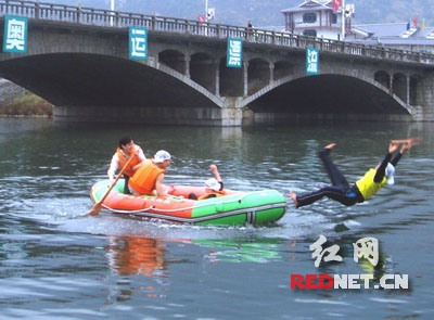 當天細雨霏霏、山色青翠,由張家界全市近百名市民組成的23個代表隊,在激流的浪花中進行了緊張激烈的激流回旋比賽。雖然天氣乍暖還寒,所有參賽代表卻個個精神飽滿,比賽沿途一路歡笑、一路尖叫。他們紛紛表示參與這樣的體育健身活動特別有意義,在大自然的懷抱里,不僅充分享受了激流回旋帶來的快樂,還集中表達了張家界人民期盼奧運、支持奧運的美好祝愿。