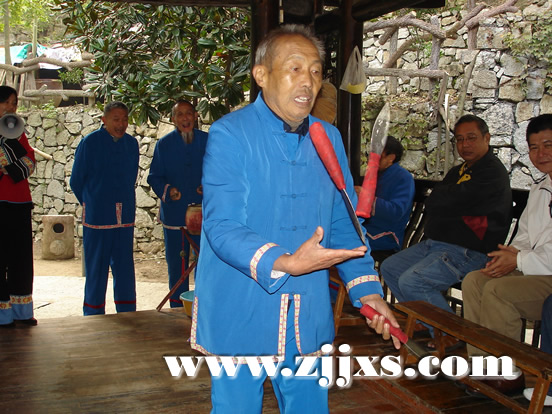 三棒鼓,唐代稱三仗鼓,約于明代傳入本境,并逐漸成為群眾喜聞樂見的民間藝術形式。每年春節(jié),藝人們結伴走村串寨拜年,表現(xiàn)對象不分貧富,戶戶必到。如遇貧寒之家,表演者將別家贈送的禮品相送,意在人人過節(jié)歡喜。充分體現(xiàn)出土家人熱情好客,心地善良的民族性格。對加強民族間團結有一定的作用。三棒鼓 通常由三至五人組成,一人擊鼓唱詞,一人鑼鼓配樂,一人耍花棒。花棒三根,長一尺,舞者左右 各執(zhí)一根,將另一根拋在空中,左右開弓,擊打空中花棒使之不落地。也有以刀代棒,以五刀代三棒的技藝。鋼刀在空中歡跳,銀光閃閃,左右穿梭。技藝高強者,突然把刀拋得及高,來一個騰空飛腳,轉身外擺,繼續(xù)接刀上拋,令人眼花繚亂,不禁稱絕。打三棒鼓,通常有“鬧春耕”、“收割打場”、“慶豐收”、“拜年節(jié)”四套,分“鯉魚跳龍門”、“玉女穿梭”、“板巖漂灘”等項目。打三棒鼓技巧性強,表演時需高度集中,用力適當,貫通一氣,并與演唱者默契配合。