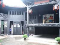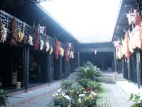 院,上下兩層,占地770平方米,由大門、戲臺、過廳、廊房、正廳組成,呈長方形。戲臺為單檐歇山頂,檐下飾如意斗拱,高16米,四根臺柱雕龍刻鳳,戲臺為穿斗式,正殿為抬梁式,整個建筑做工精細,極富民族特色,屬縣重點文物保護單位。
