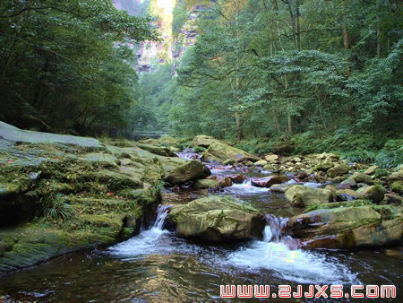 ,返回旅行車休息去了,但我一咬牙堅持了下去,山之與水是大自然的陰陽之配合,山因水顯,水為山藏,山水之游怎能缺了個水。 金鞭溪位于張家界森林公園的東北處,溪面寬約二十米,但水淺處僅沒過