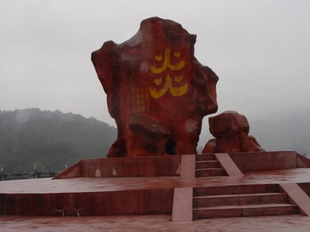 位于陵前海拔205米的龍珠山,1993年為點取首屆“炎黃杯”世界華人華僑龍舟賽圣火而建。臺高40米,臺中央立有高3.8米、體積為31立方米的褐紅色巨大點火石,正面刻有1.5米高的朱紅象形體“炎”字,猶燃燒的火炬。'93“炎黃杯”世界華人華僑龍舟賽圣火火種就是由世界雜交水稻之父袁隆平在此點燃。臺面三層呈塔形,每層高0.6米,直徑分別為9米、6米、3米的梯形圓臺,底層是邊長30米嵌砌鵝卵石50萬顆的正方形平臺,取天圓地方之意。拾階而上登臨圣火臺,可遠眺炎帝陵雄壯的全貌及碧水環繞、脈似臥龍的山川形勢!