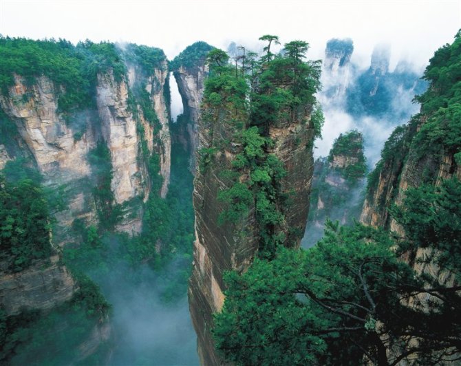 袁家界面積約1200公頃,平均海拔1074米,它東鄰金鞭溪、遠(yuǎn)眺鷂子寨;南望黃石寨,連接天波府;西通天子山;北距索溪峪。