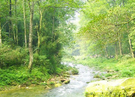 那么金鞭溪究竟美在哪里呢?慢慢往下看吧!金鞭溪全長大約7.5千米,沿途有著名景點:閨門巖、觀音送子、金鞭巖、神鷹護鞭、醉羅漢、師徒取經、劈山救母、長壽泉、文星巖、雙龜探溪、秀才藏書、豬八戒背媳婦、紫草潭、千里相會、跳魚潭、重歡樹、駱駝峰、水繞四門等等。而且在這里有著清新的空氣,曾經有一個外國人把這里的負離子作了一個比喻,他說把這里一立方厘米的負離子變成錢的話,可以值很多美圓呢!所以,朋友們要是嫌張家界248的門票貴了的話,你不防多吸幾口,把錢給賺回去。要是你還怕賺不回的話,沒關系,你用個干凈的塑料袋多裝點兒,帶回去了再吸,比你在市場上買的氧力得要好多了哦!純天然無污染的呢!只是金鞭溪最美麗也最精華的是前半程(也就是金鞭溪的起點到千里相會處),那在這里肯定就還有個后半程(也就是千里相會到水繞四門了)。