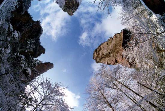 緊靠金鞭巖左側,有一座與金鞭平齊的峰巖。峰形象一只山鷹,頭高昂,勾嘴,雙翅半展,利吻微張,試振雙翅, 成俯沖之勢,緊緊守護著金鞭,似欲與來犯金鞭者搏擊,其形態氣勢,維妙維肖。故有“神鷹護鞭”之譽。