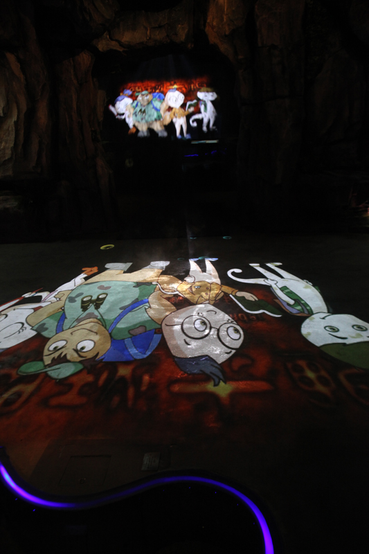 當游客進入到家園空間的最后階段的時候,家園四周的景象由秋天自然過渡到冬天,舉目一片白雪皚皚的景象;地面上投影效果也會變得白雪皚皚,游客在投影區域中走動會留下他們的腳印。