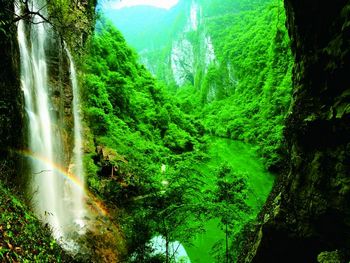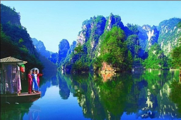 下午安排: 中餐后游覽人間“瑤池”——【寶峰湖】(門票96元/人,已含)集山水于一體,融民俗風情于一身,尤以奇秀的高峽平湖絕 景、“飛流直下三千尺”的寶峰飛瀑、神秘的深山古寺聞名,觀賞寶峰飛瀑、仙女照鏡、石門迎賓、孔雀開屏、金蟾含月、神龜出水等栩栩如生的景點,泛舟湖上,聽水上阿哥阿妹山歌傳情 、碧水悠悠鷺鷥捕魚。